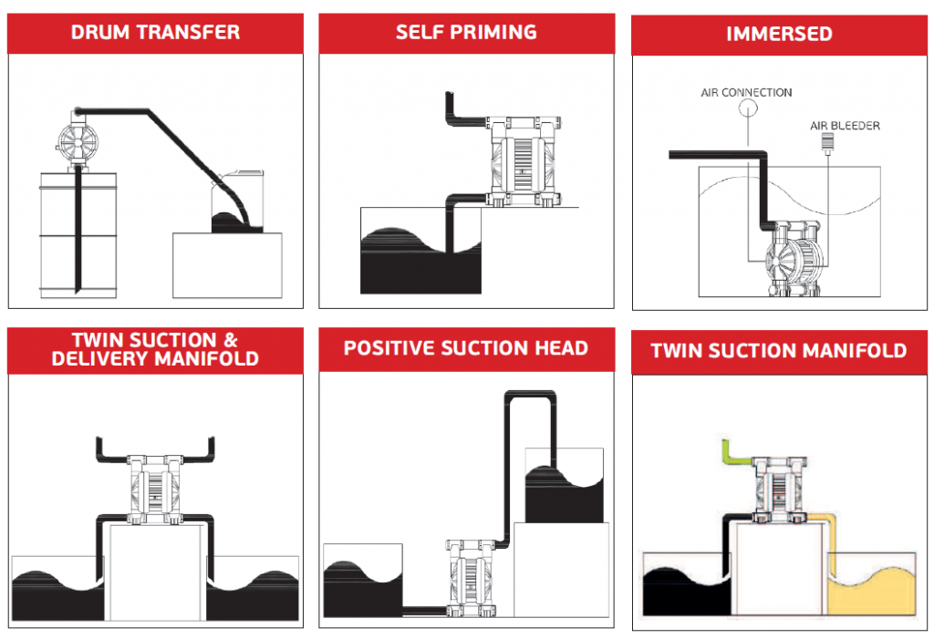 Dòng máy bơm màng khí nén thích hợp để bơm cho nhiều nhu cầu đặc biệt như nước thải, bùn thải hóa chất đặc biệt có thể bơm các loại chất có độ nhớt cao hoặc lẫn cặn rắn .